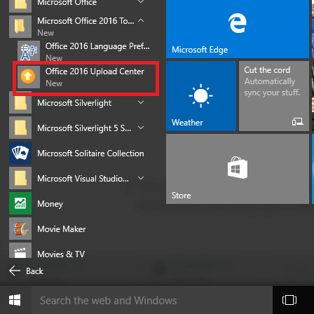 - Vaya a Microsoft Office Tool y haga clic en el centro de carga de Office 16> configuración
