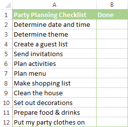 Supongamos que ha creado una lista de verificación para la planificación de la fiesta:
